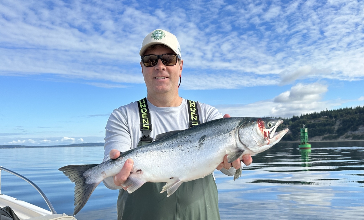 A Spot Tail Salmon Guide is the only guide service offering light tackle and saltwater fly fishing in the central Puget Sound area. At up to 45 MPH, our boat can reach several fishing areas quickly. Puget Sound offers some of the most spectacular surroundings for salmon fishing in the United States.